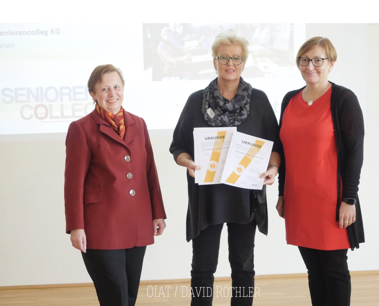 Es ist kurz nach neun Uhr morgens im Seniorencolleg, Praterstraße 45: Ein einfacher Raum, knappe 30 Quadratmeter mit einem großen Tisch, einer Tafel und Wänden voll mit eingerahmten Zertifikaten und alten Zeitungsartikeln. Überall verteilt stehen Werbebanner und liegen Broschüren, auf denen einen glückliche Senioren mit ihren Handys und PCs anstrahlen.